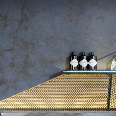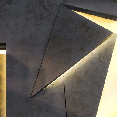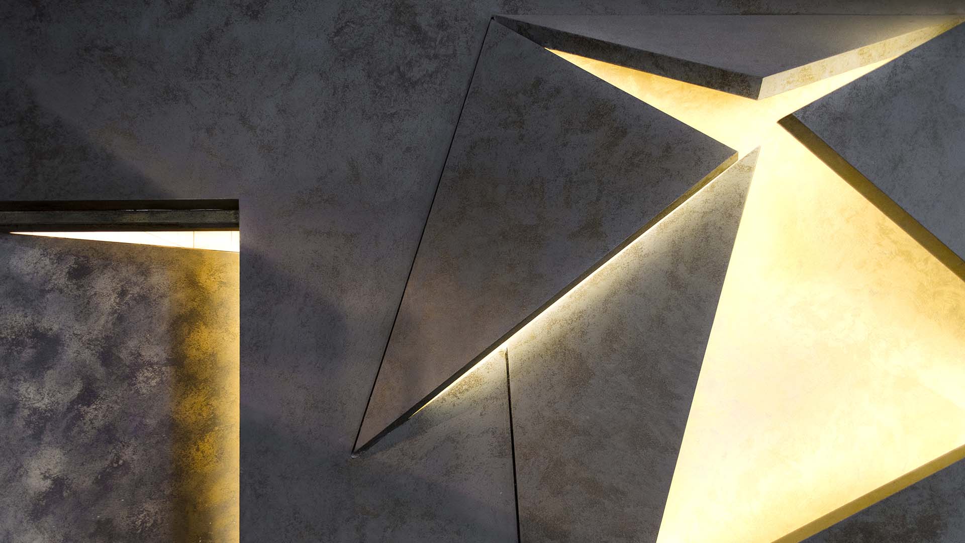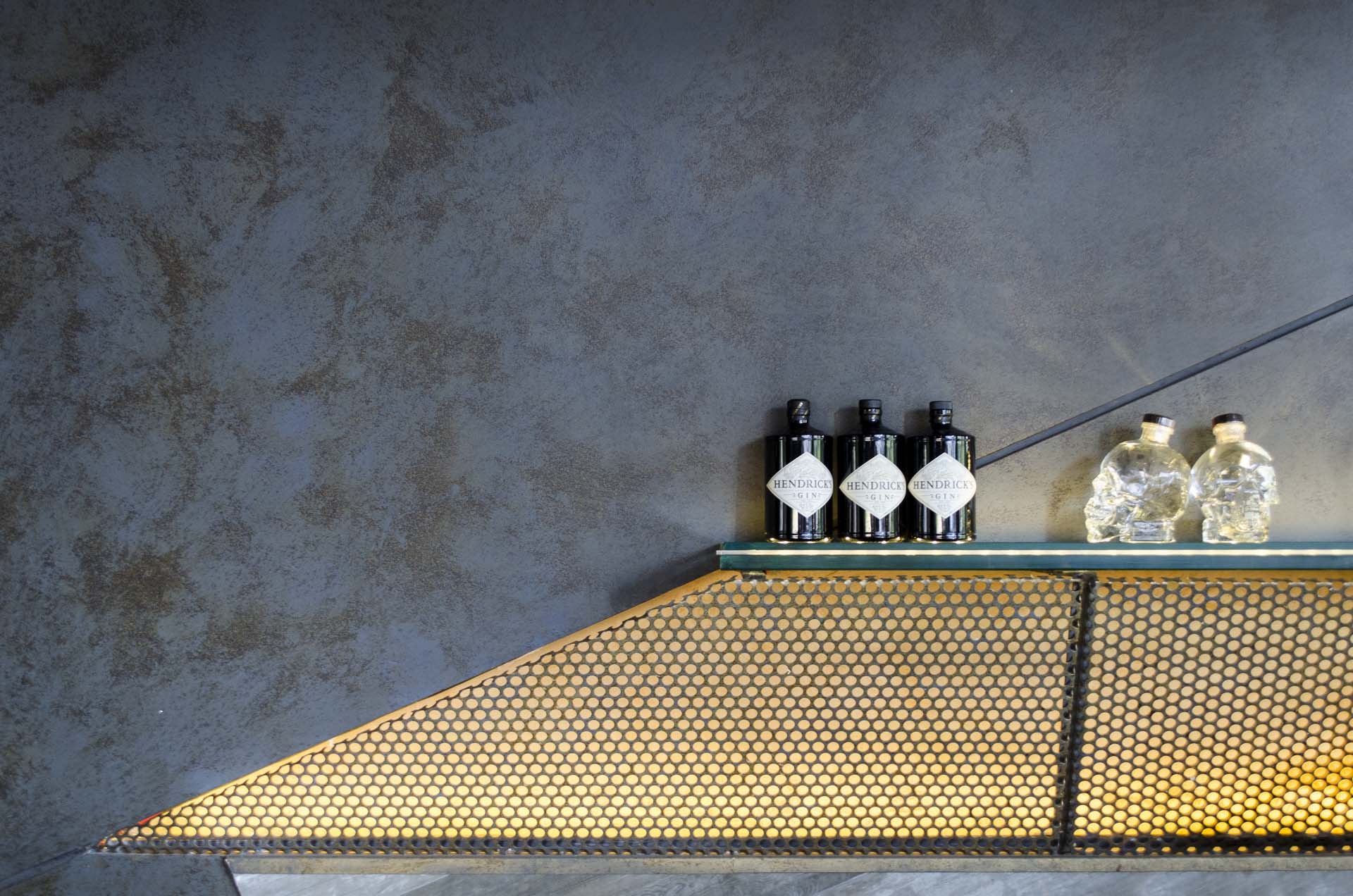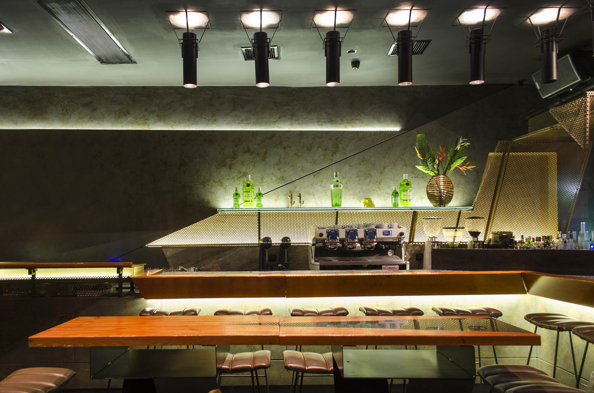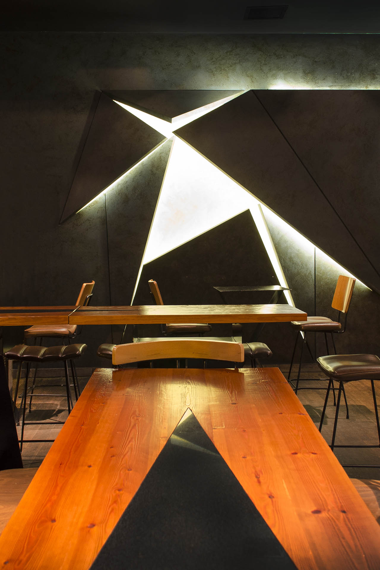 Το bar-cafe ‘2 Saints’ βρίσκεται στο κέντρο της πόλης της Λαμίας. Η ιδιομορφία στον σχεδιασμό του έργου αυτού, έγκειται στην ύπαρξη ενός μόνο επιμήκους τοίχου, ο οποίος αποτελεί το βασικό καμβά της σύνθεσης. H ‘μεγάλη έκρηξη’ στο ένα μέρος του τοίχου δίνει τη σειρά της σε έντονους σχεδιαστικούς άξονες που αναπτύσσονται κατά μήκος του έργου κι εκτονώνονται στην άλλη του άκρη, ως μία μεταλλική διάτρητη κορδέλα που ενοποιεί το σύνολο του έργου.