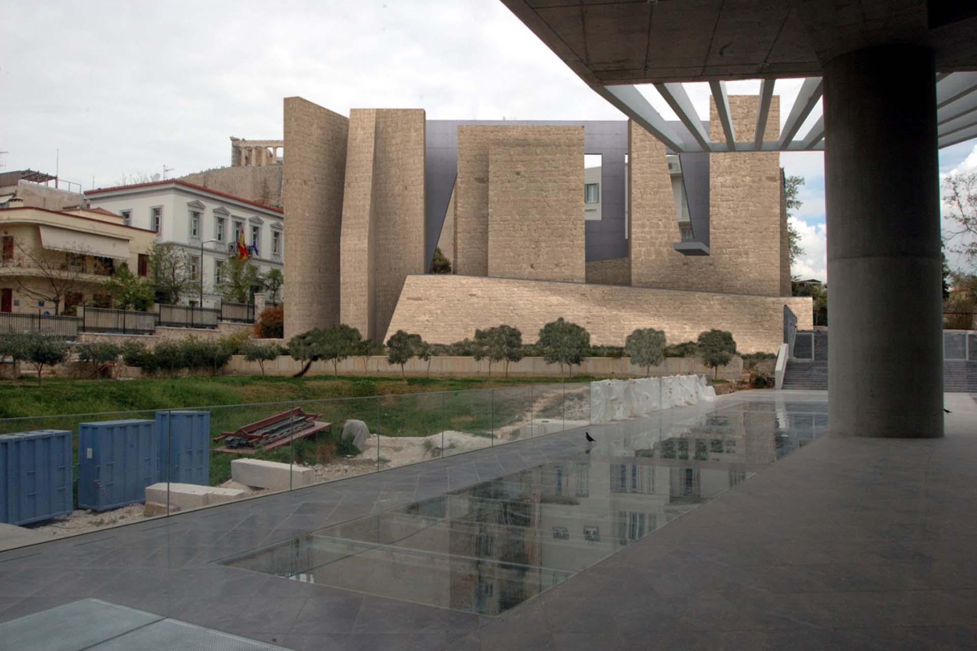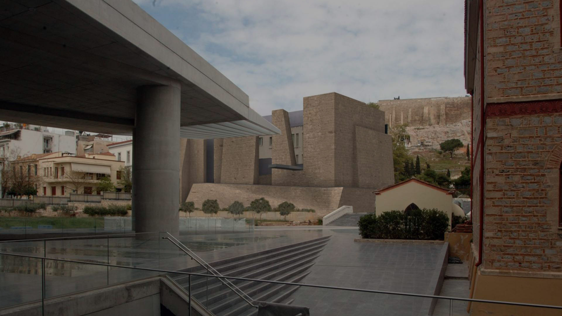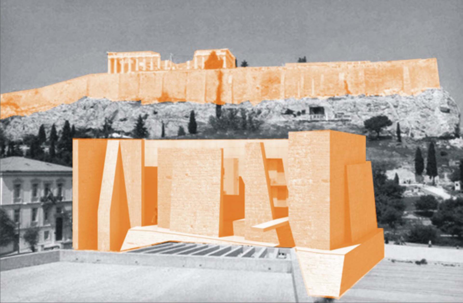Η ύπαρξη των τριών κτισμάτων ανάμεσα στο νέο Μουσείο και το βράχο της Ακρόπολης αντιμετωπίζεται σαν «ανεπιθύμητο κενό» που διακόπτει το νήμα της σχέσης τους. Η πρόταση είναι η πλήρωση του κενού με την κατασκευή ενός “θραύσματος” από το τείχος της Ακρόπολης έτσι ώστε να μη διακόπτεται το βλέμμα του επισκέπτη του Μουσείου από τα κτίσματα της Διονυσίου Αρεοπαγίτου, αντιμετωπίζοντας, έτσι, τη νέα κατασκευή σαν συνέχεια του τείχους. Τα κενά του νέου τείχους εναλλάσσονται με τα κενά ενός δεύτερου από εμφανές οπλισμένο σκυρόδεμα κατασκευασμένο σε δεύτερο επίπεδο ανάμεσα στο υπάρχον παλαιό τείχος και το θραύσμα του. Τα δύο επίπεδα πλέκονται με μία ράμπα που οδηγεί τον επισκέπτη από την Διονυσίου Αρεοπαγίτου μπροστά στο νέο Μουσείο, στο ύψος του εστιατορίου. Έτσι, με δύο μόνο κινήσεις πλεγμένες η μία μέσα στην άλλη- που συνδέονται με μία ράμπα- και με την αξιοποίηση της κλίμακας, της αναλογίας, της αντίθεσης, της σύμπραξης πλήρους και κενού, του ρέοντος και του οριοθετημένου χώρου, της λειτουργικότητας και της αισθητικής, το αδιαφανές γίνεται διαφανές.