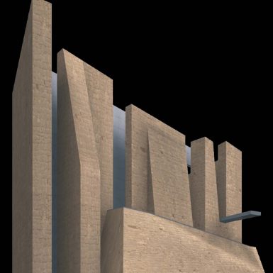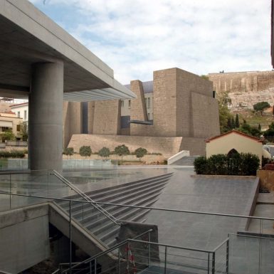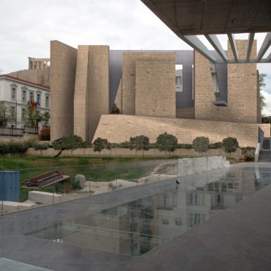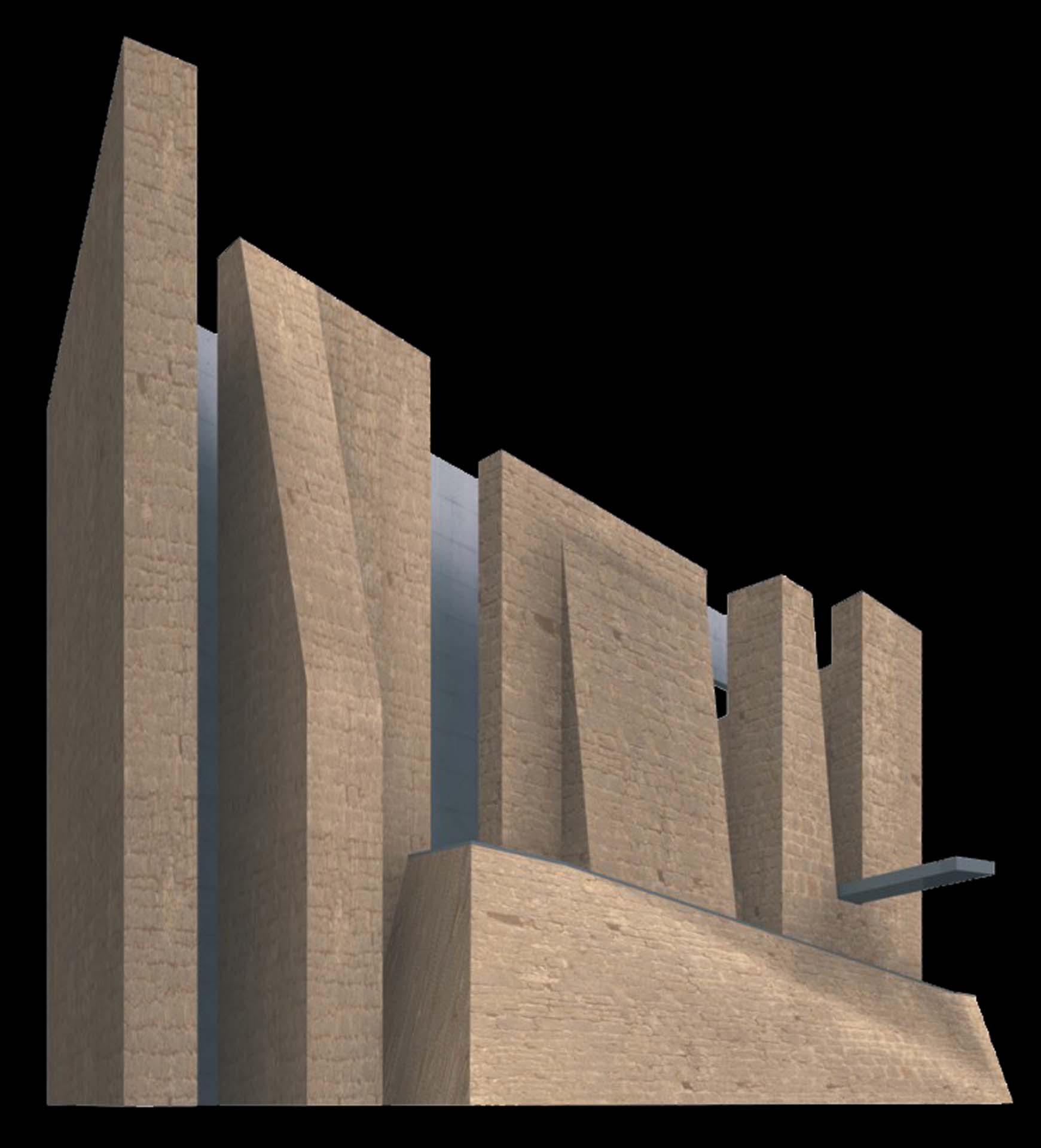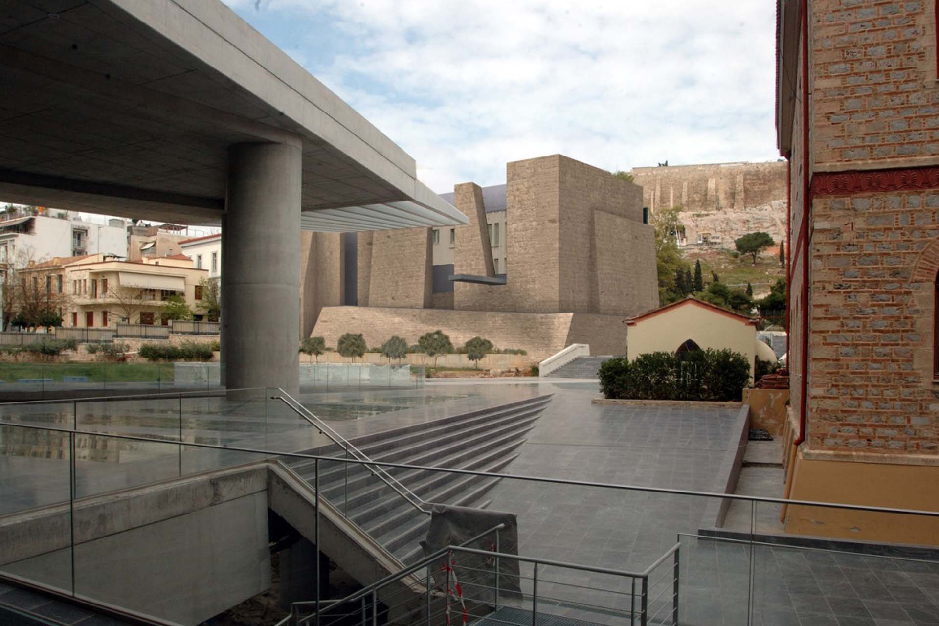 Η ύπαρξη των τριών κτισμάτων ανάμεσα στο νέο Μουσείο και το βράχο της Ακρόπολης αντιμετωπίζεται σαν «ανεπιθύμητο κενό» που διακόπτει το νήμα της σχέσης τους. Η πρόταση είναι η πλήρωση του κενού με την κατασκευή ενός “θραύσματος” από το τείχος της Ακρόπολης έτσι ώστε να μη διακόπτεται το βλέμμα του επισκέπτη του Μουσείου από τα κτίσματα της Διονυσίου Αρεοπαγίτου, αντιμετωπίζοντας, έτσι, τη νέα κατασκευή σαν συνέχεια του τείχους. Τα κενά του νέου τείχους εναλλάσσονται με τα κενά ενός δεύτερου από εμφανές οπλισμένο σκυρόδεμα κατασκευασμένο σε δεύτερο επίπεδο ανάμεσα στο υπάρχον παλαιό τείχος και το θραύσμα του. Τα δύο επίπεδα πλέκονται με μία ράμπα που οδηγεί τον επισκέπτη από την Διονυσίου Αρεοπαγίτου μπροστά στο νέο Μουσείο, στο ύψος του εστιατορίου. Έτσι, με δύο μόνο κινήσεις πλεγμένες η μία μέσα στην άλλη- που συνδέονται με μία ράμπα- και με την αξιοποίηση της κλίμακας, της αναλογίας, της αντίθεσης, της σύμπραξης πλήρους και κενού, του ρέοντος και του οριοθετημένου χώρου, της λειτουργικότητας και της αισθητικής, το αδιαφανές γίνεται διαφανές.