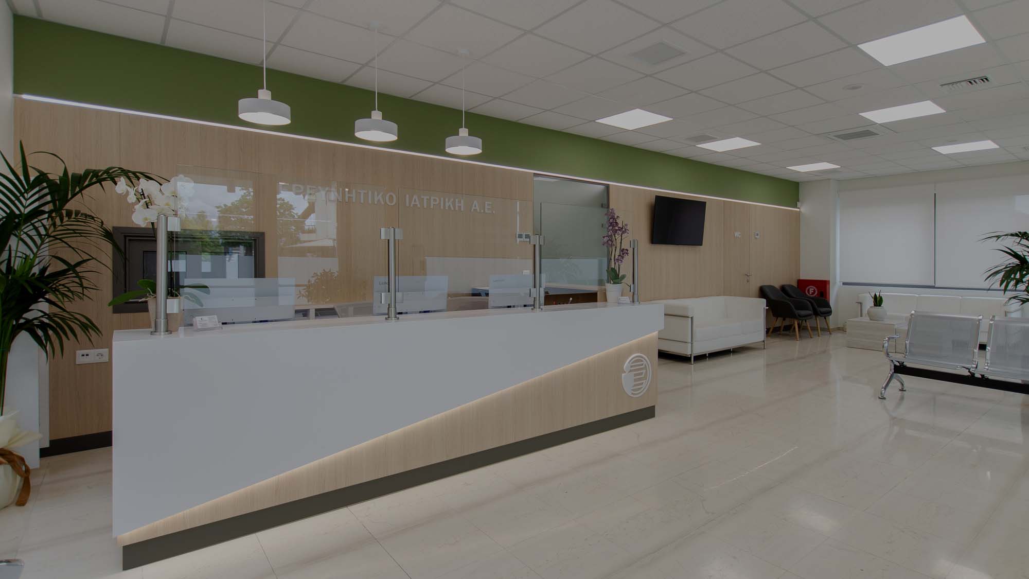 Ο χώρος υποδοχής του Ιατρικού Διαγνωστικού Κέντρου σχεδιάστηκε με στόχο να αποπνέει ηρεμία, καθαρότητα και επαγγελματισμό. Η λιτή γεωμετρία, οι γήινες αποχρώσεις ξύλου σε συνδυασμό με το λευκό, καθώς και οι πράσινες πινελιές, δημιουργούν ένα φιλόξενο περιβάλλον που ενισχύει την αίσθηση εμπιστοσύνης. Η εργονομία της reception, η άνετη διάταξη των καθιστικών και οι προσεκτικά επιλεγμένοι φωτισμοί, συμβάλλουν σε μια συνολική εμπειρία άνεσης για τον επισκέπτη, ενώ παράλληλα αναδεικνύουν την ταυτότητα του χώρου.