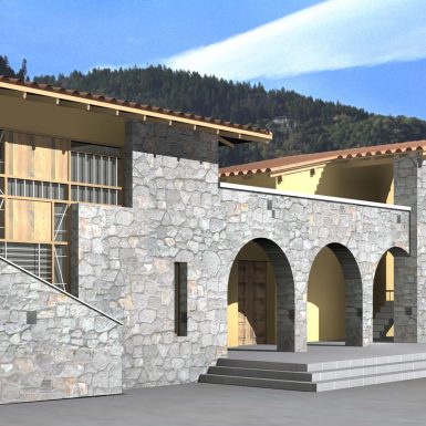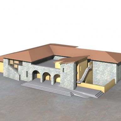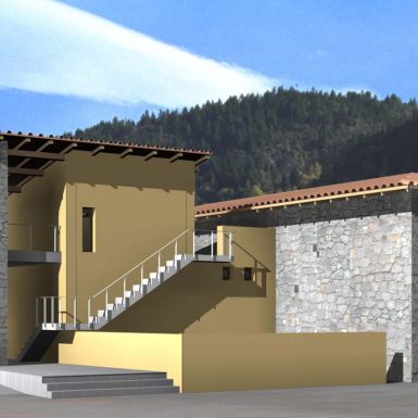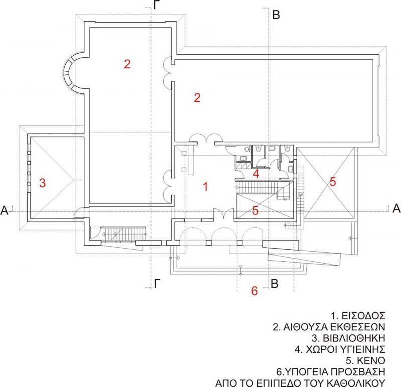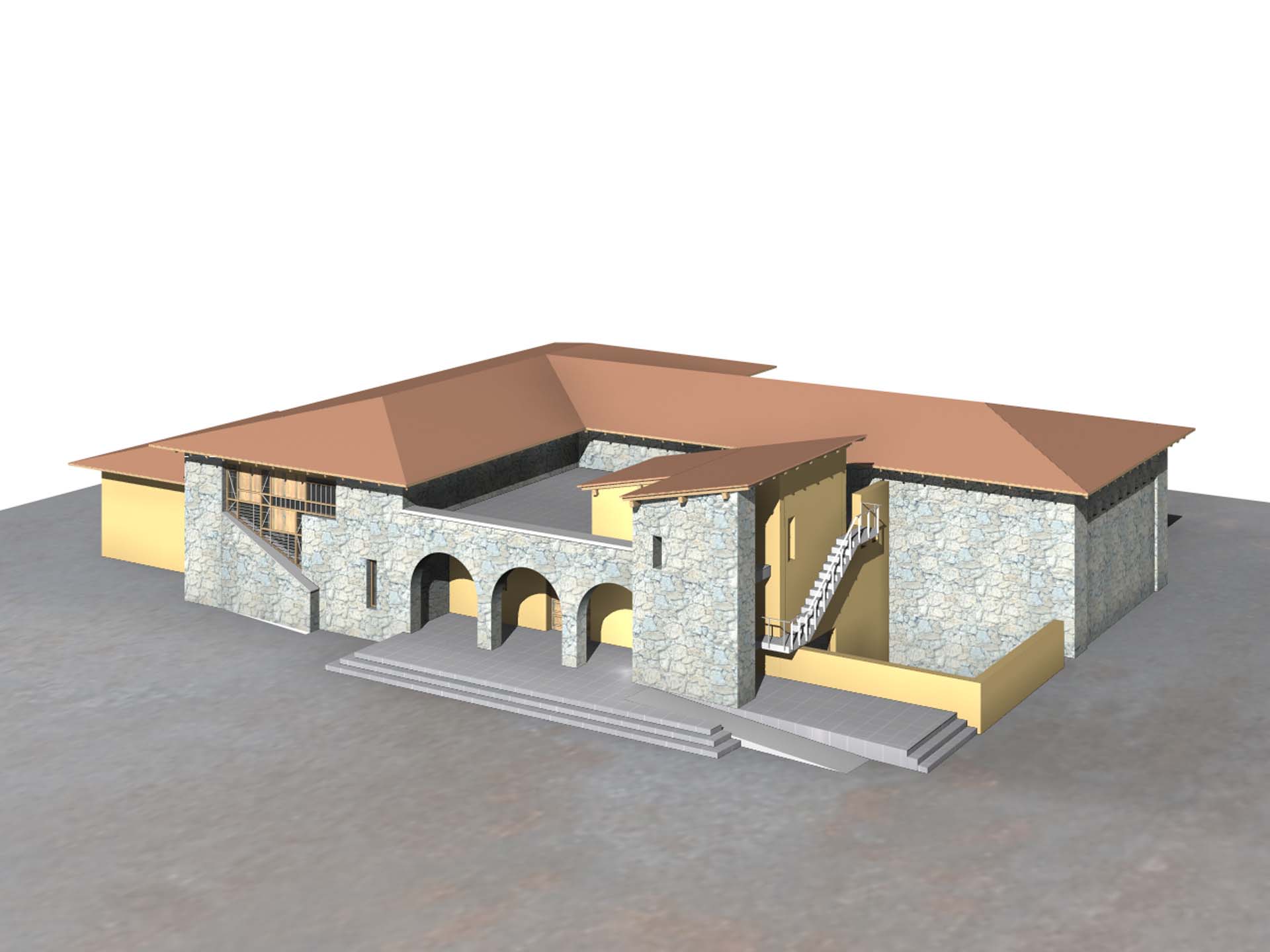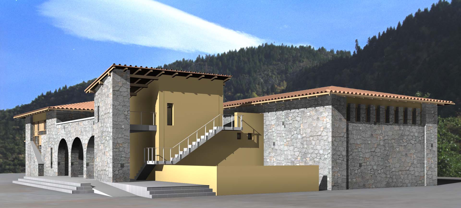 The Holy Place of Agathonos’ Monastery is a crossed temple with a dome that is surrounded by a well-preserved stonework. Several wall paintings that were created in three different time-periods (16th century, 18th and end of 20th century) are being preserved in its interior along with the Monastery’s possessions of pictures, reliquaries, vestments and books from the 15th century. The today’s project involves the creation of a museum and of a guests’ room and are both orientated to the Holy Temple of Virgin Mary, which constitutes the central part of the Monastery. The main access to the building is from the North-Western side that is also the entry to the Monastery. An additional entry is located in the internal courtyard of the Monastery. The exhibition area is divided into two uninterrupted spaces. Through the reception we can also visit the Library of the Museum that is located in the South-East side and it can easily be isolated from the public.